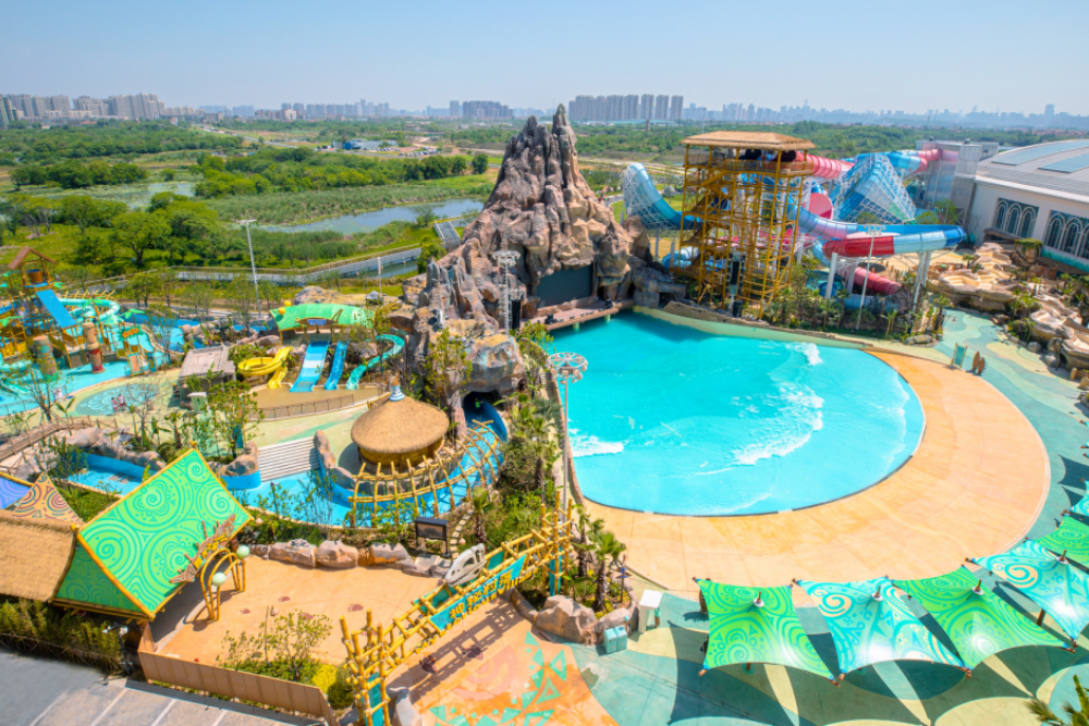 The 10,000m² indoor water park maintains a constant temperature year-round. It innovatively introduces the "Super Magic Time-Space," a state-of-the-art seven-slide combination, and features Central China's first 207-meter-long body-slide Extreme River, delivering an unparalleled adrenaline rush. The "Crystal Palace" inspired space is filled with lush tropical vegetation and includes diverse aquatic attractions like an infinity pool, a Board Surfing Pool, and the "Jasmine Slide." This allows guests to escape the summer sun and surf freely even in winter.